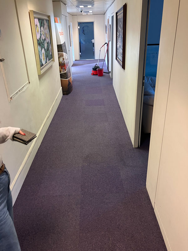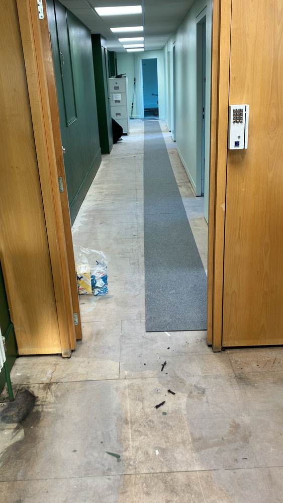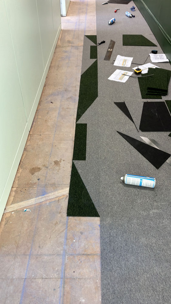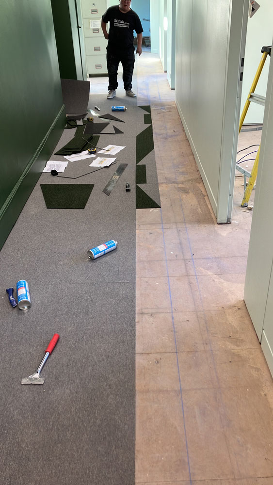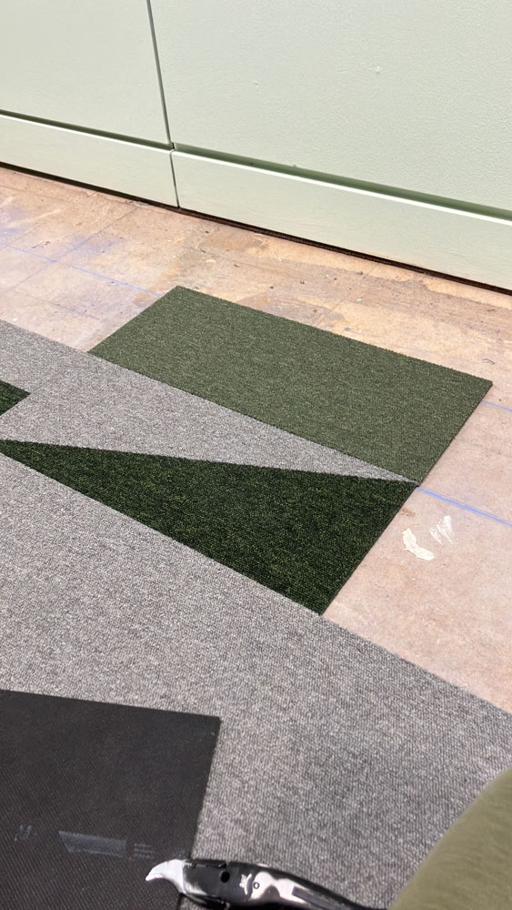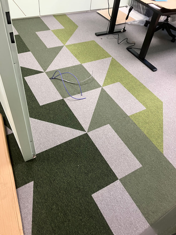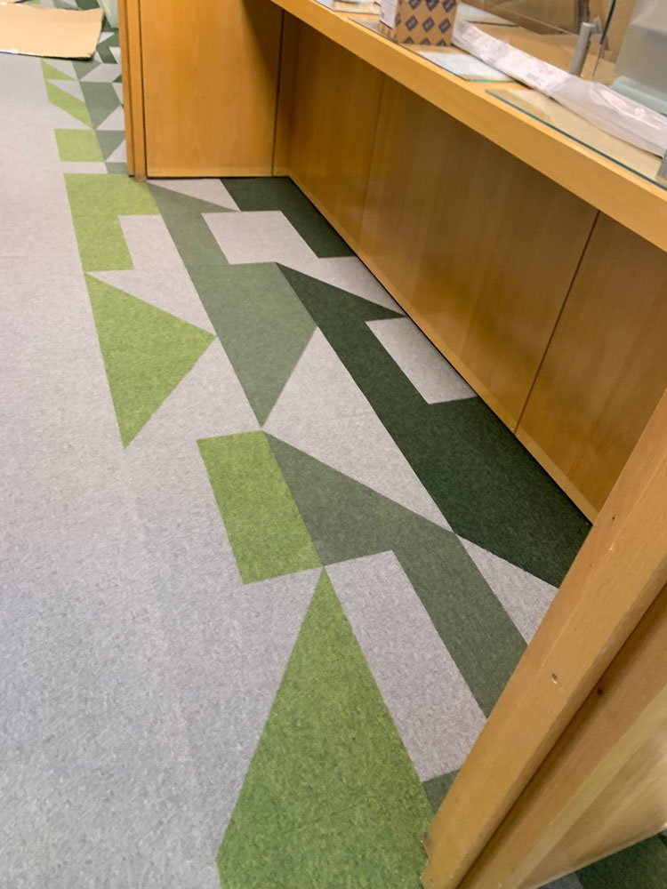 We recently completed a flooring installation at an office space in London, where our team expertly fitted over 200 square metres of Mohawk Group's Art Intervention Creative Spark carpet tiles. The client selected a sophisticated palette featuring main grey and three different green hues, resulting in an intricate design that our fitting team brought to life with exceptional precision.