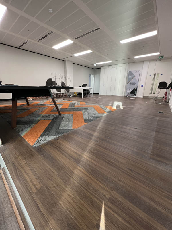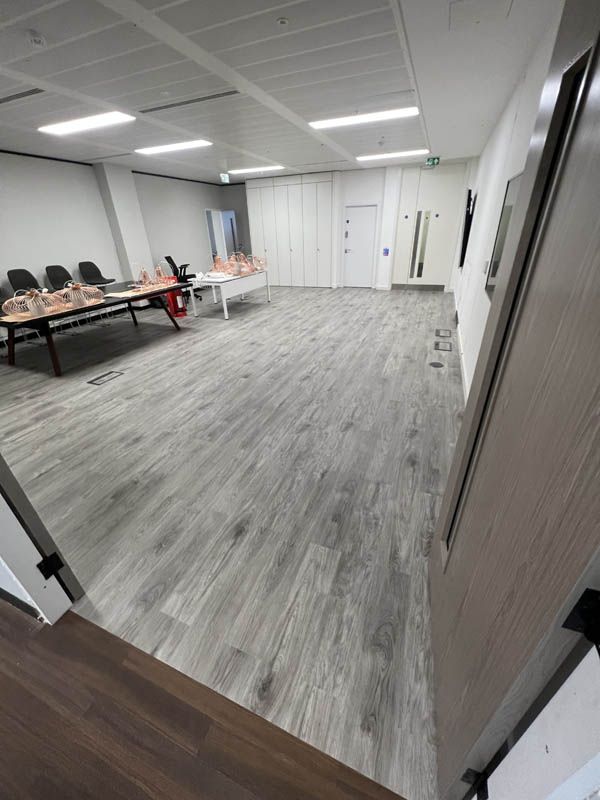 The choice of these LVT options was a brilliant one for the office space. Interface's Touch of Timber Carpet Planks in Olive bring a touch of nature indoors, offering warmth and aesthetic appeal while maintaining a professional atmosphere. Meanwhile, the LG Decotile Gluedown Cygnet Oak LVT not only adds elegance but also offers durability and easy maintenance, ideal for high-traffic commercial spaces.