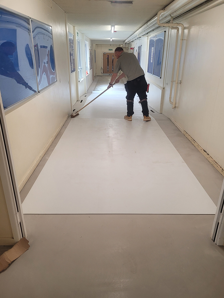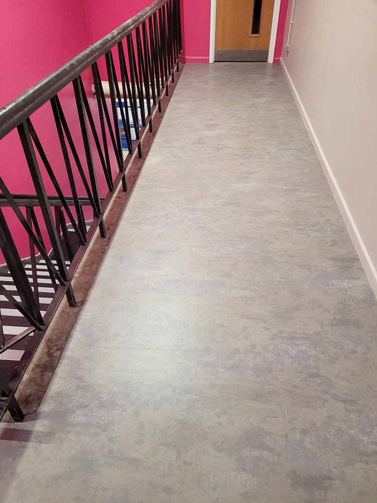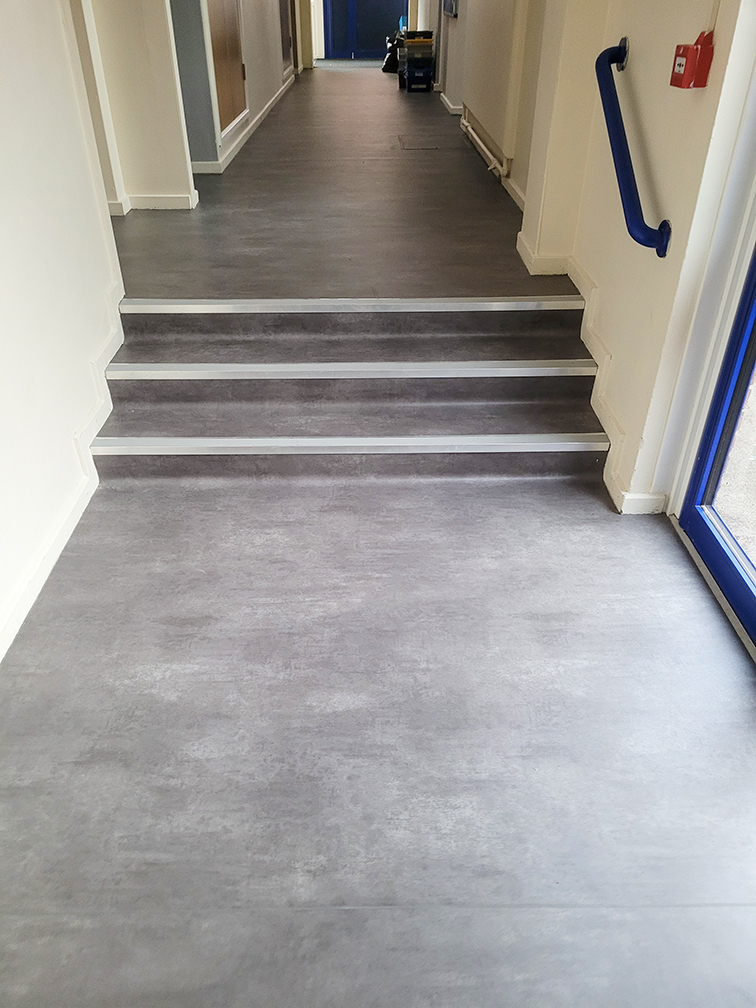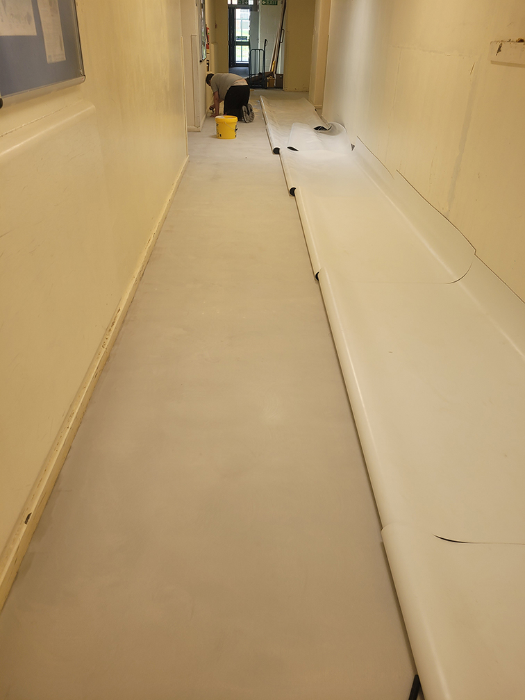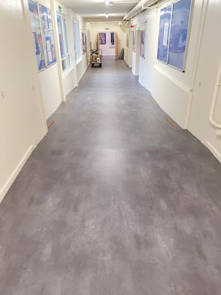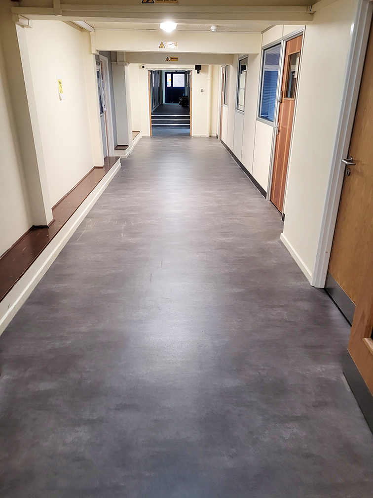 Our DCTUK team has fitted the Polyflor Expona Flow PUR Concrete Sheet Vinyl into the Shrewsbury Academy.