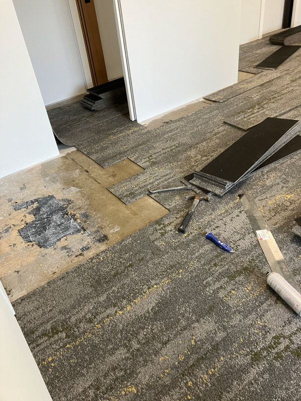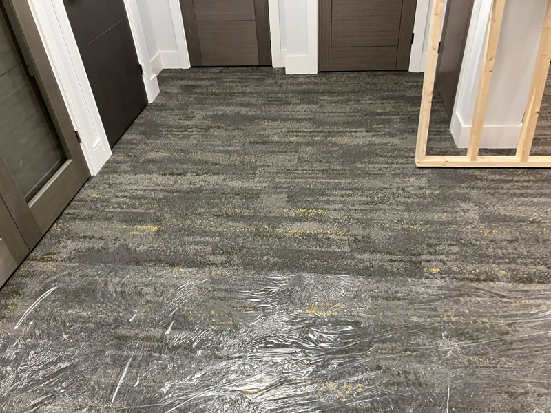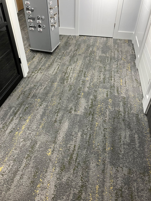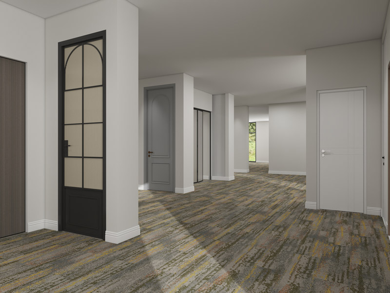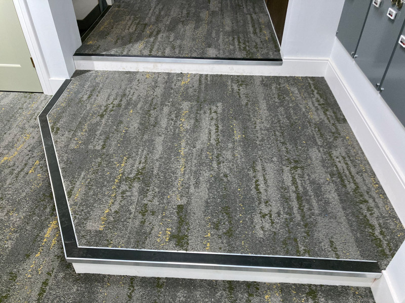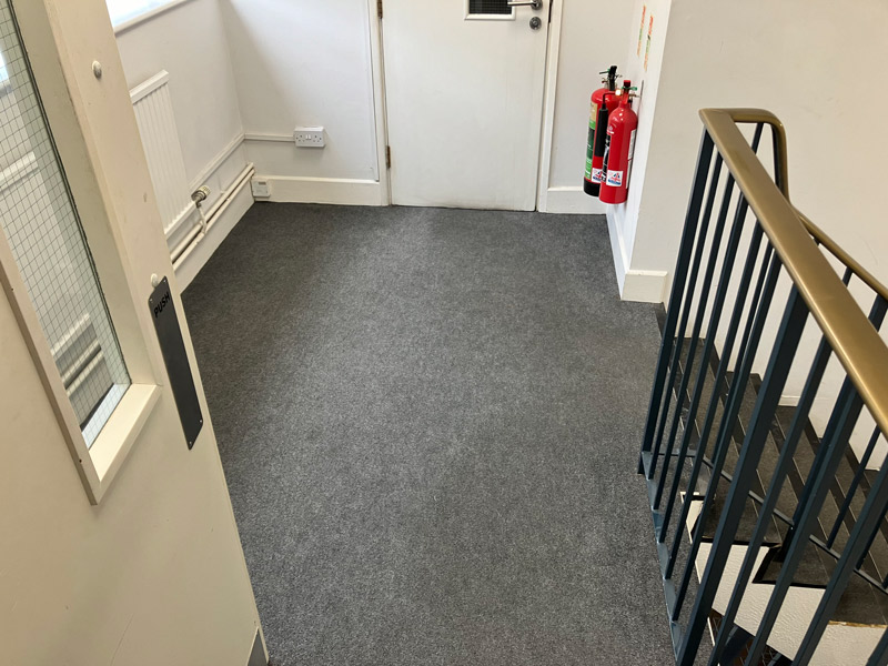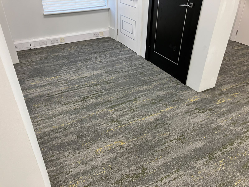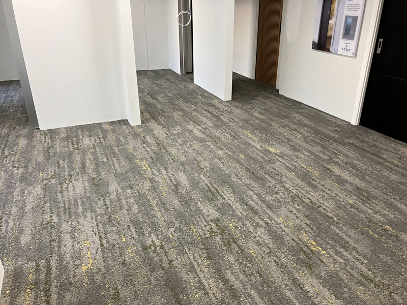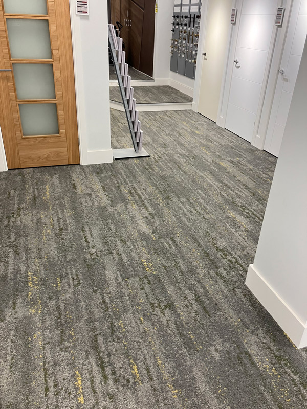 This project presented an added challenge due to the numerous door edges in the showroom. Our expert fitting team meticulously cut and shaped the carpet planks to seamlessly integrate around each door, ensuring a flawless finish throughout the space.
