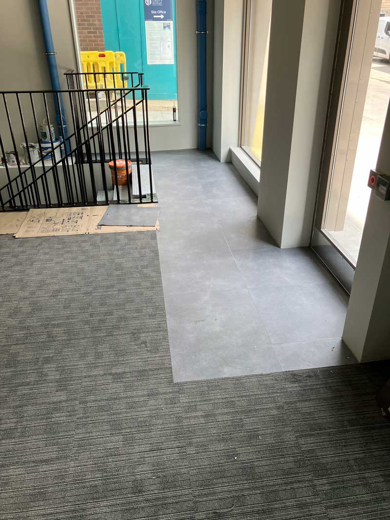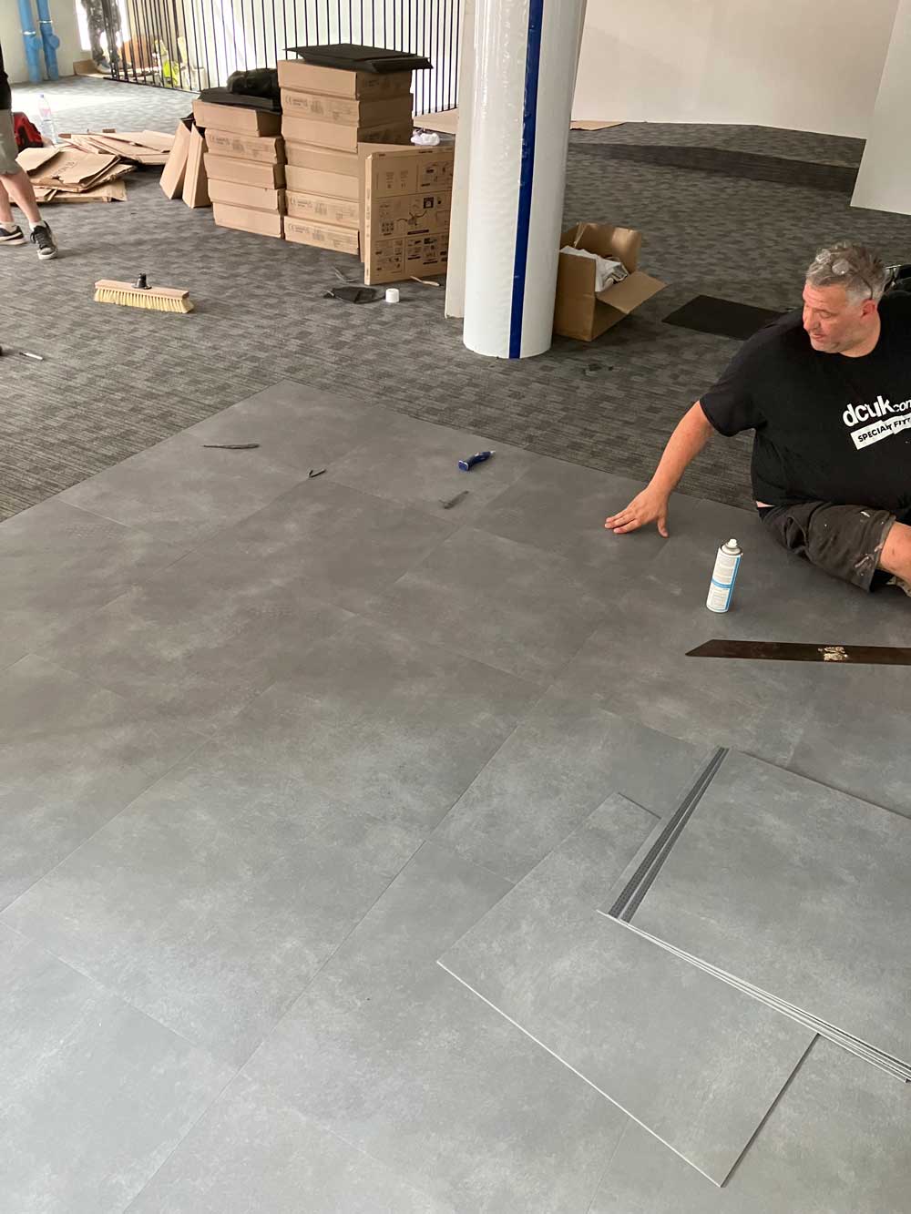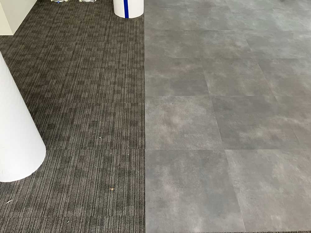 In addition to the carpet tiles, we also installed 20m2 of Gerflor Creation 55 LVT in Bloom Uni Grey. This luxury vinyl tile (LVT) is celebrated for its realistic design, wear resistance, and ease of maintenance, making it an ideal choice for high-traffic areas.