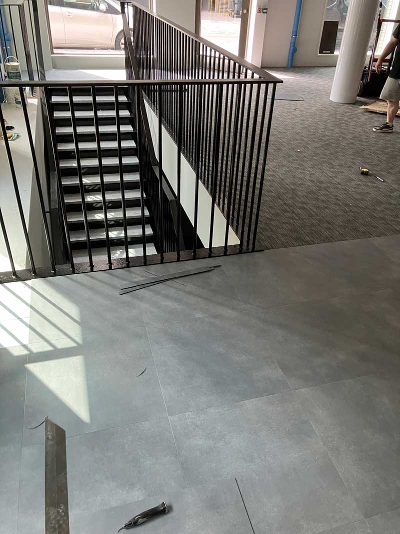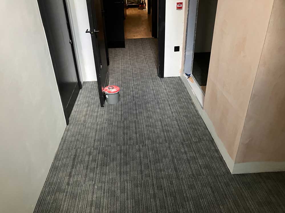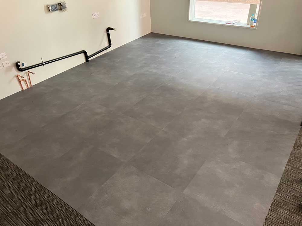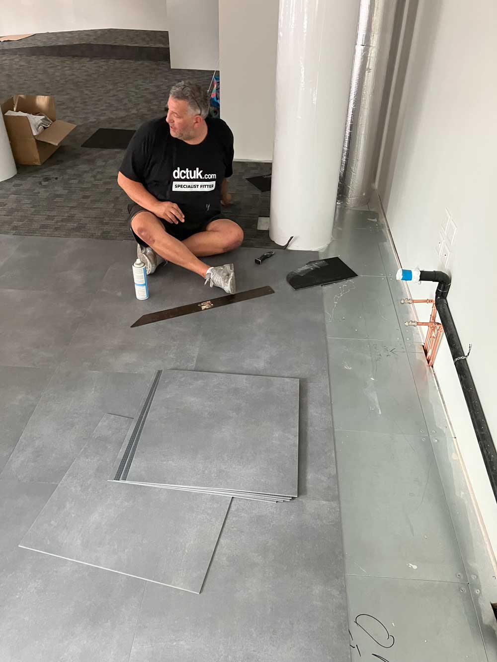 In addition to the carpet tiles, we also installed 20m2 of Gerflor Creation 55 LVT in Bloom Uni Grey. This luxury vinyl tile (LVT) is celebrated for its realistic design, wear resistance, and ease of maintenance, making it an ideal choice for high-traffic areas.