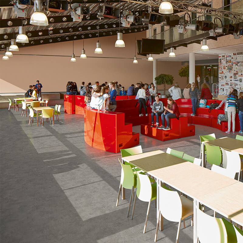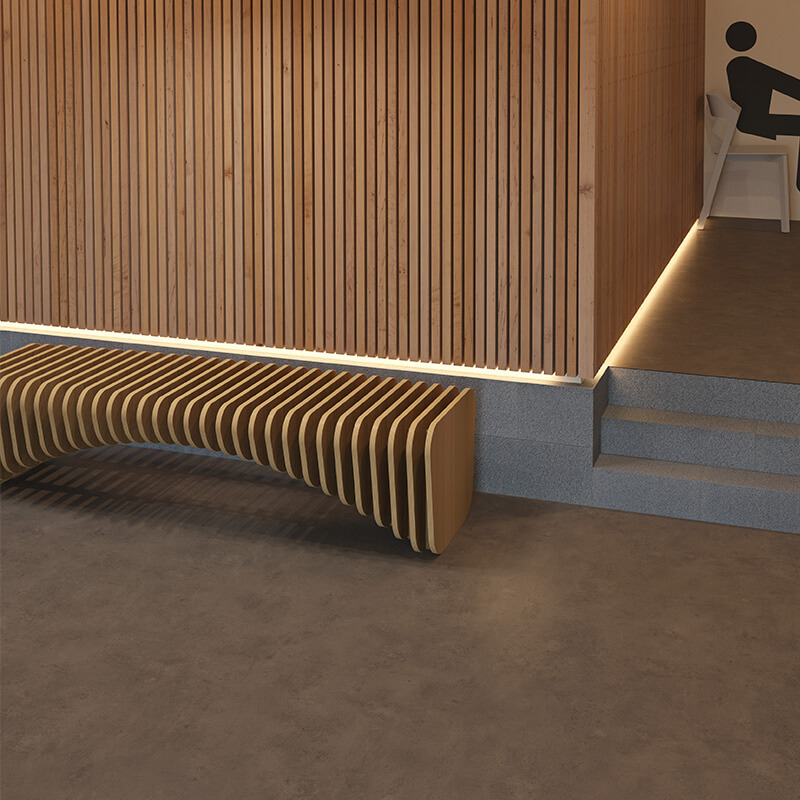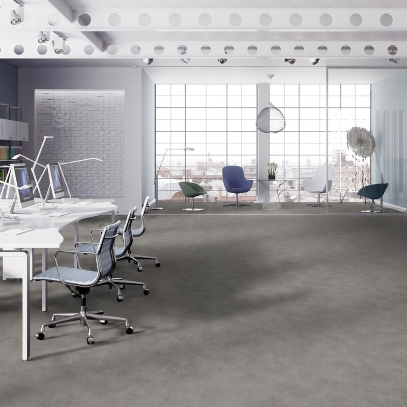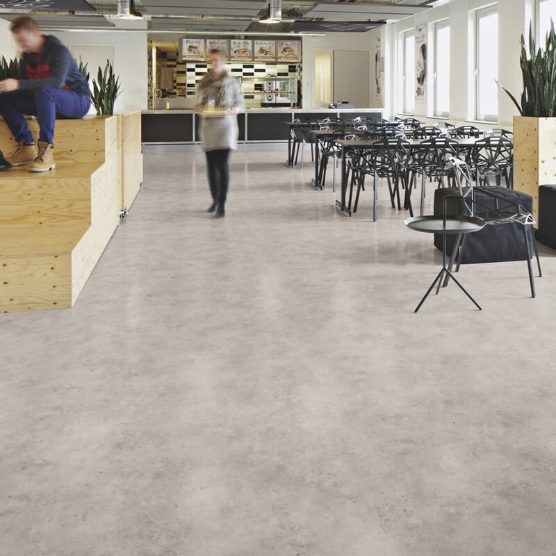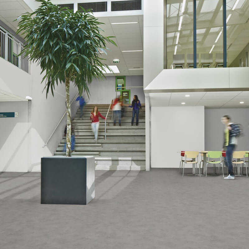Forbo Sarlon Cement is a modern concrete floor covering that’s available in sheet form and, unlike real polished concrete, this vinyl product has an impact sound reduction rating of 15dB so you can forget about those annoying footsteps and echoing voices. Sarlon Cement is available in 6 neutral colour ways including on-trend greys and natural browns so there’s always a shade to suit any commercial space. Unlike real concrete, Sarlon Cement is easily cleanable and also easy to maintain so no excuses please when it comes to getting those marigolds on and giving it a nice little scrub-a-dub-dub!