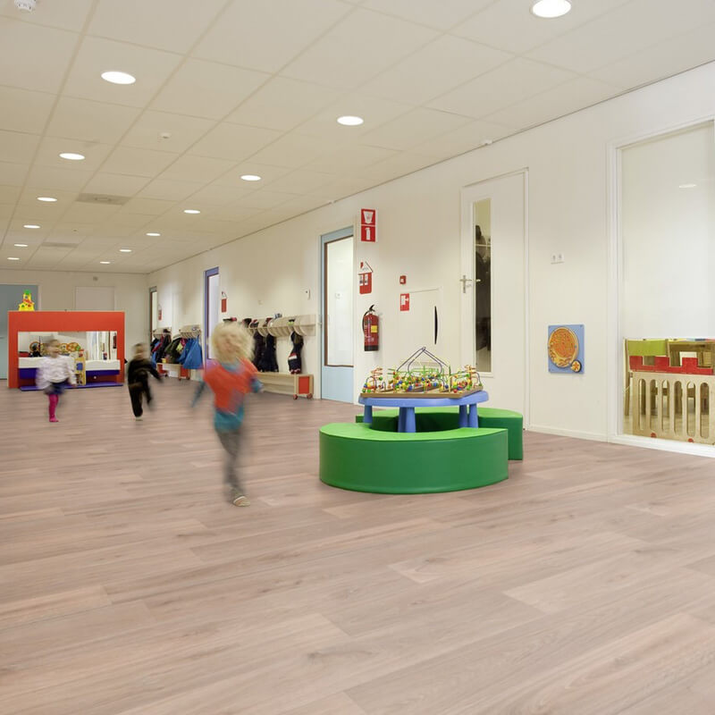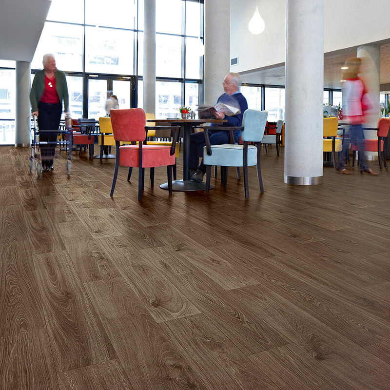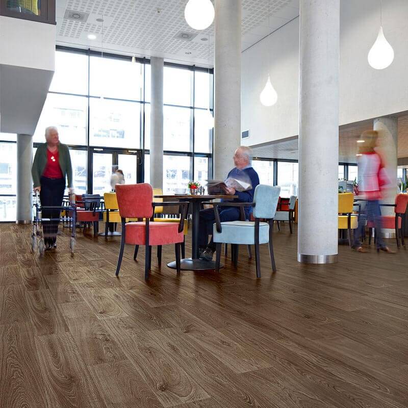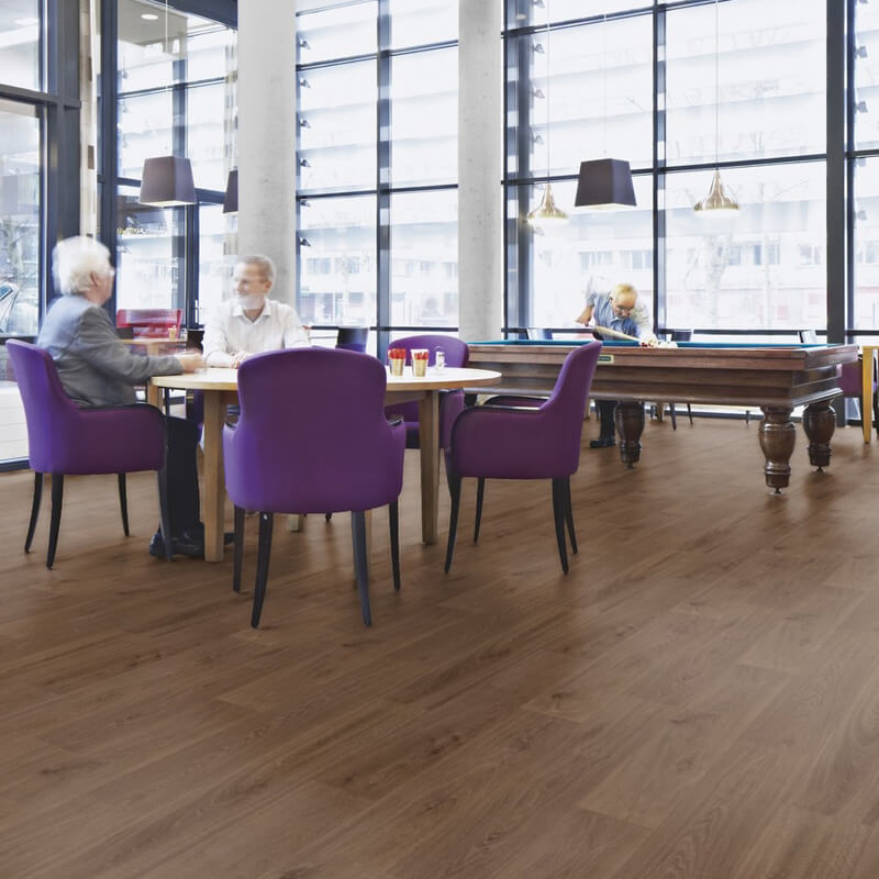 Oak wood flooring does not have to be a thing of the past when it comes to commercial spaces. We now have this snazzy product from Forbo called Sarlon Oak Acoustic Vinyl. Are you excited to hear more? Okay, okay I’ll hurry up and spill the beans (not on your new vinyl flooring though I’m not that silly)