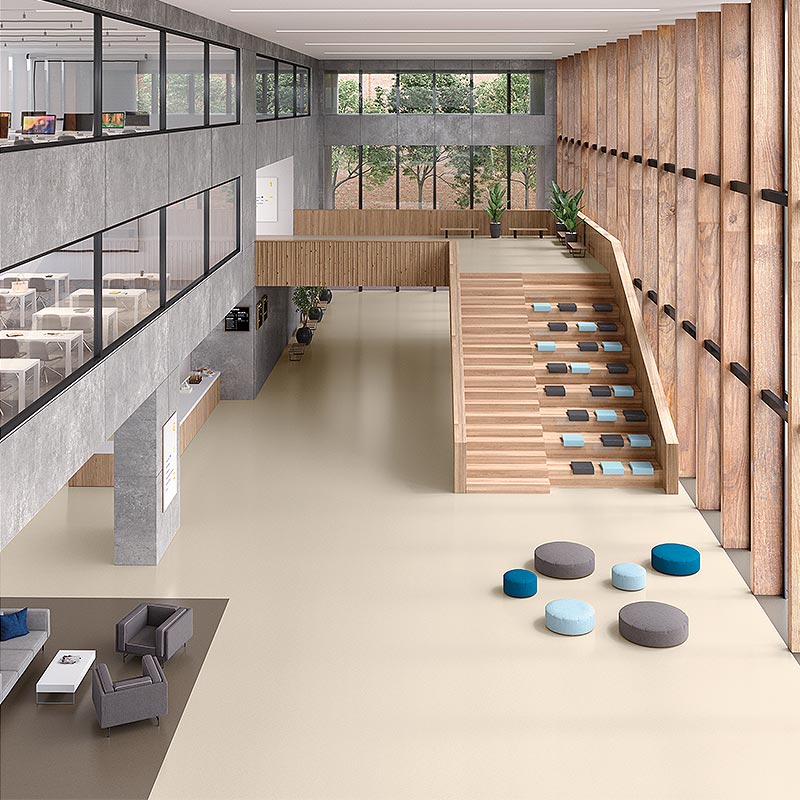 Polyflor Palettone PUR enables you to bring a special brand of style and charm to any commercial environment. Ideally suited for heavy traffic areas, this product is suitable and highly recommended for any commercial environments ranging from education facilities to retail outlets, achieving a generic A+ rating in major sectors. As mentioned previously, Palettone is available in 50, yes you read that right, colourways from pale neutrals to more intense solid shades. Now, I did tell you to look away if you are a bit wishy-washy with making decisions. As with all PUR ranges, it features a high quality, cross-linked polyurethane reinforcement, UV cured to provide a low-cost polish free maintenance regime for the lifetime of the flooring. Use this product with underfloor heating up to a maximum of 27ºC, plenty warm enough to keep those little piggies warm.
